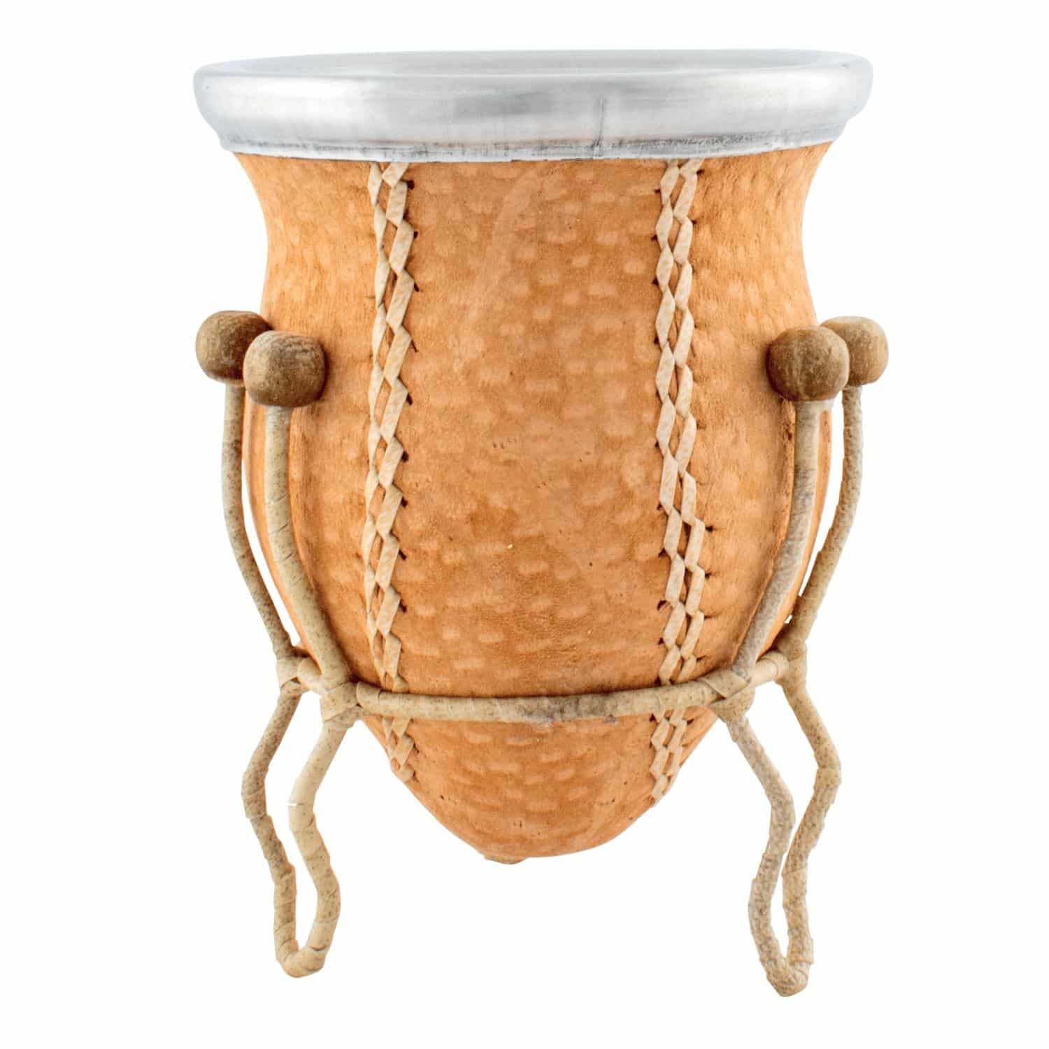 Mate Vuelo De Calabaza Recubierto En Carpincho Claro Con Posa Forrado En Cuero Crudo
