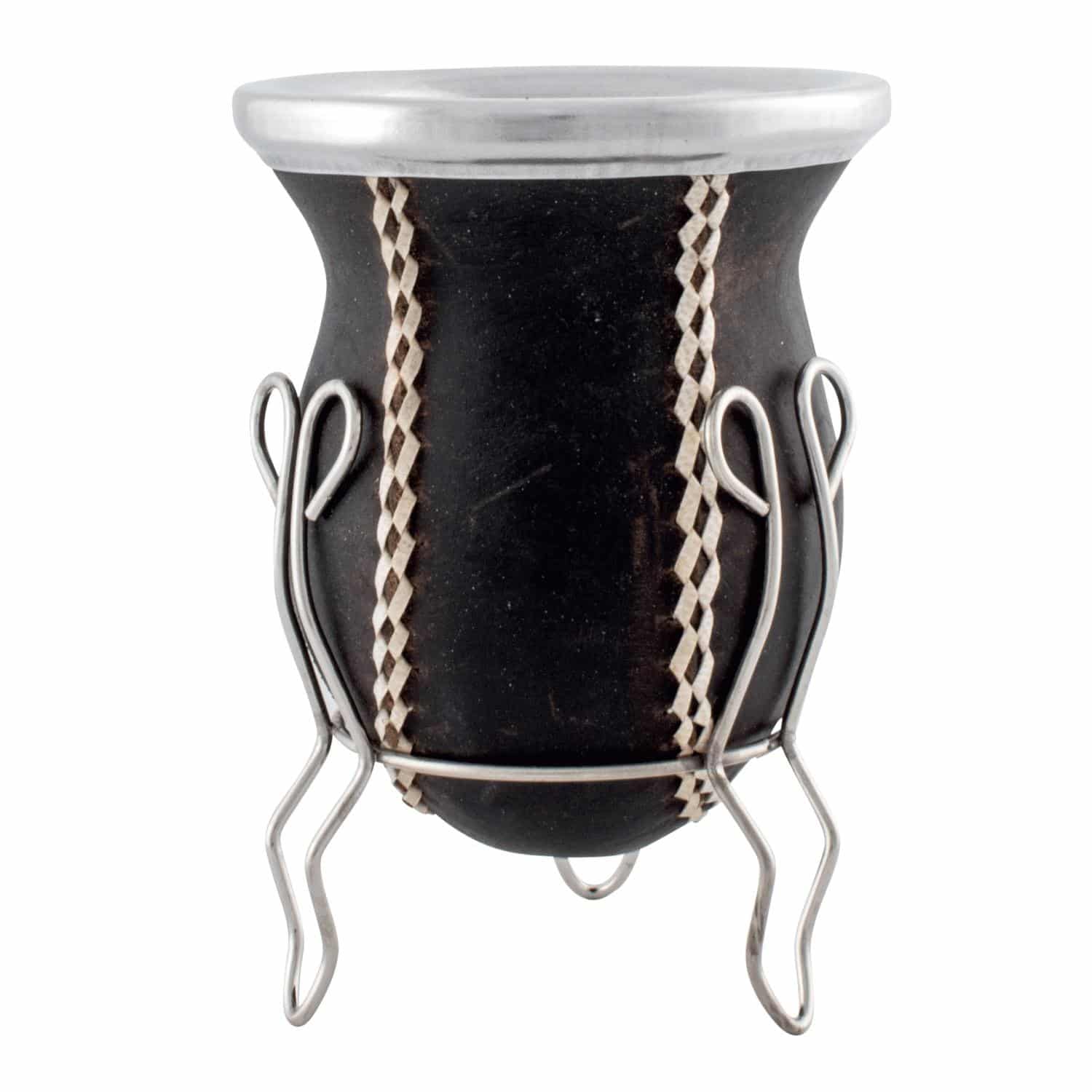 Mate Vuelo De Calabaza Recubierto En Cuero Vaqueta Tejido En Tiento Con Posa De Metal