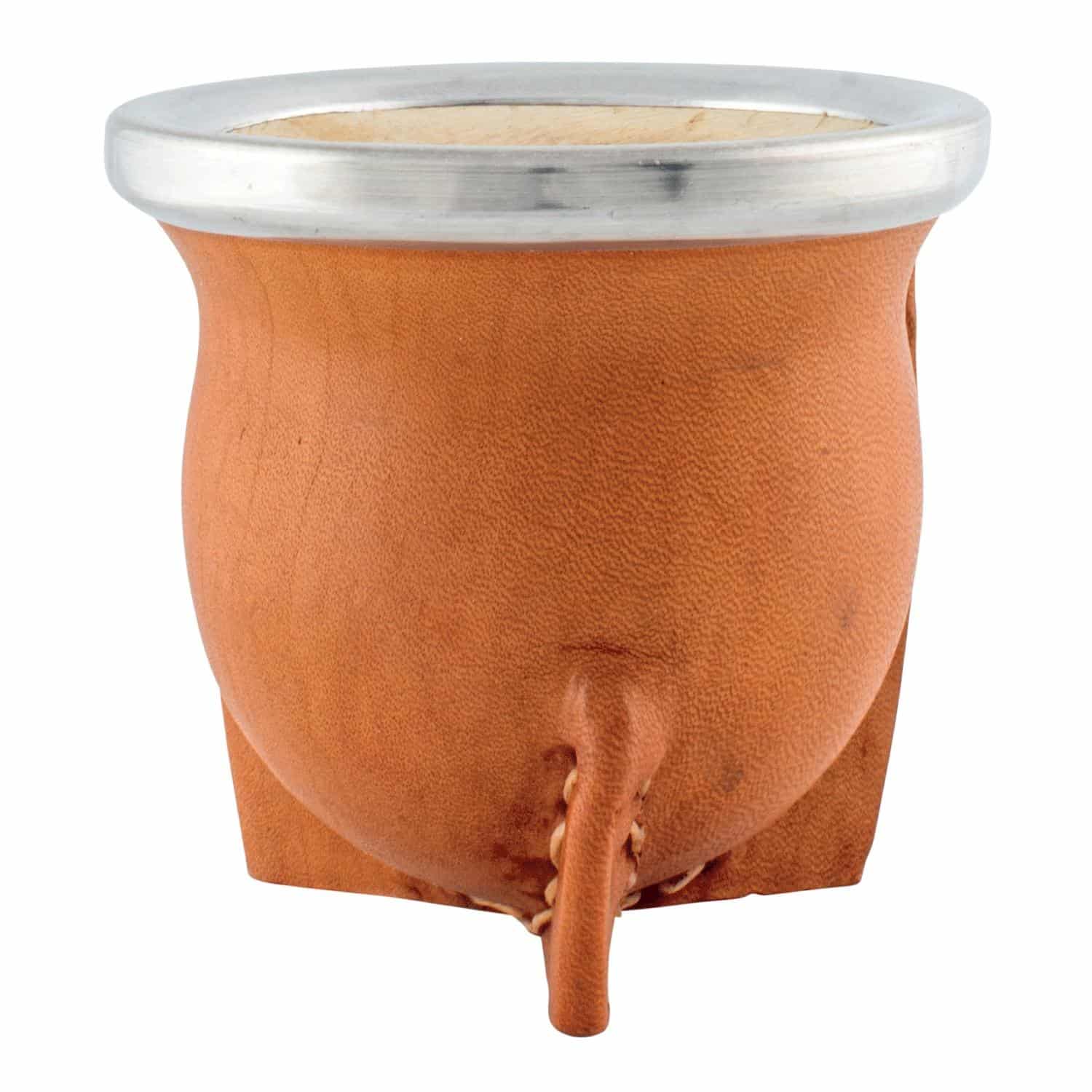 Mate Vuelo De Calabaza Forrado En Cuero Vaqueta Claro Con Patas